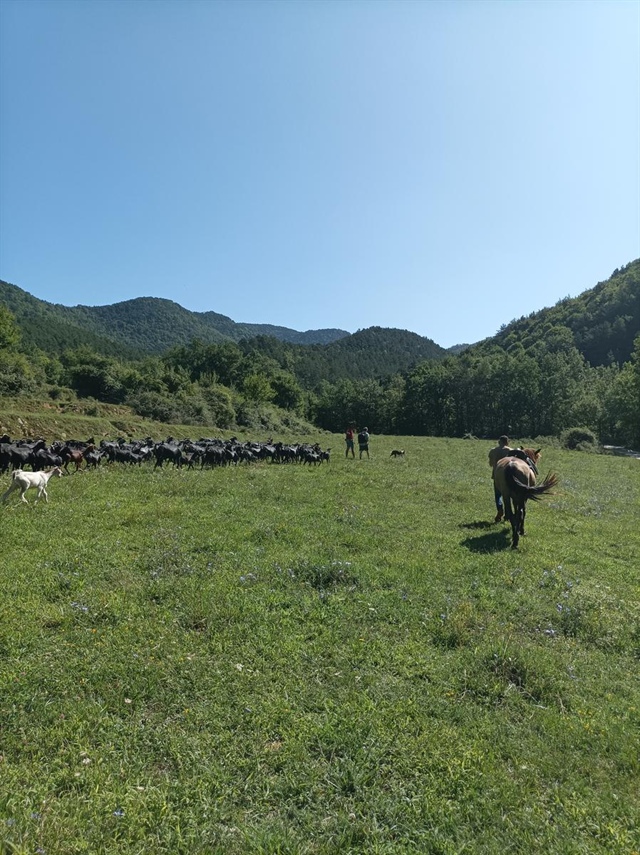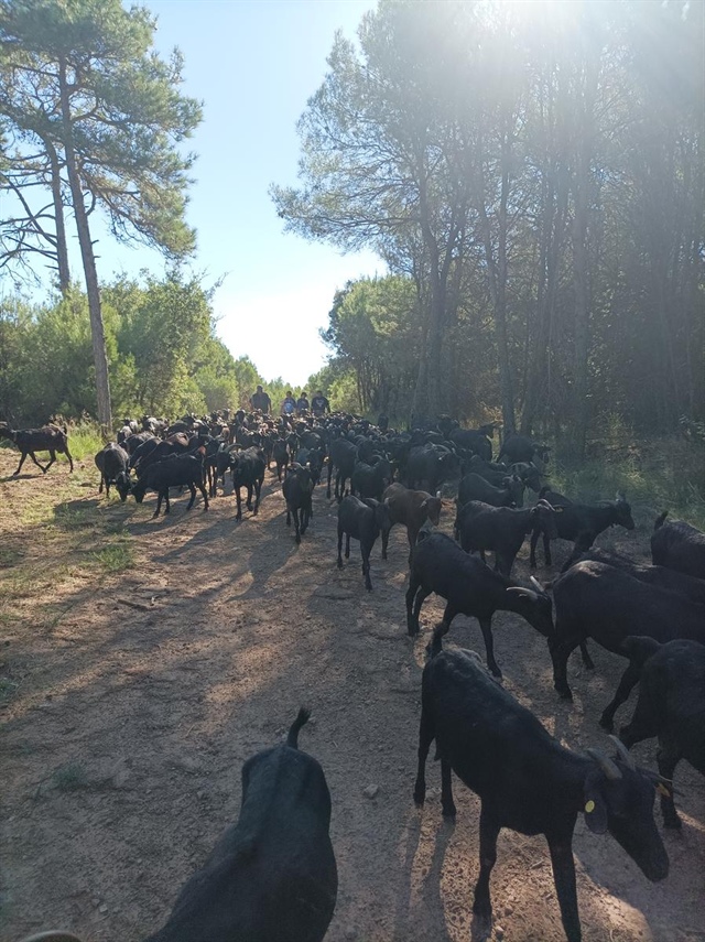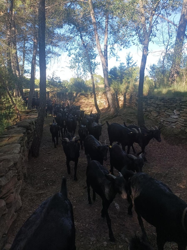 En Daniel té un ramat de 150 cabres de raça murciana-granadines i durant aquesta transhumància també de dues de raça sevillana. Juntament amb una euga (la Fabiola) i dos rucs, així com tres gossos (Pirata, Brisa i Lluna). També l’acompanya un rabada en Ricard que està aprenent l’ofici amb molta il·lusió. I no ens podem oblidar de l´Ingrid que està sempre on cal un cop de mà i sobretot coordinar.