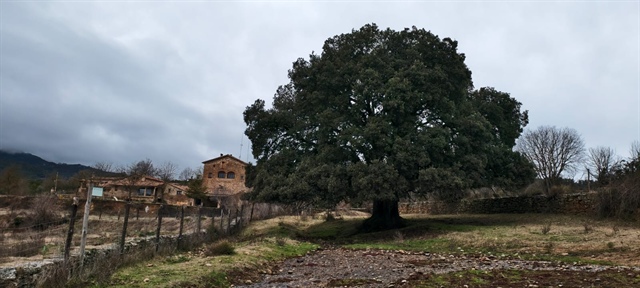 Seguim el nostre camí i ens topem amb el Pi de la Torra, d’una alçada espectacular i que antigament es resinava i una mica més endavant, amb un roure impressionant que es troba a prop de la masia El Pla de Montpol, una casa antiga de pedra, restaurada i dedicada a casa de colònies. I per últim, una troballa curiosa, si més no: una vaca morta de la que només queden el ossos i la pell.