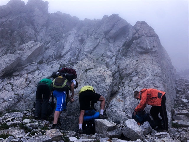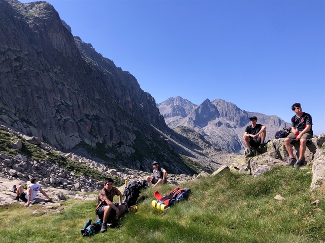 En parlem de tot plegat amb els companys ex-monitors de l’Agrupa tot dinant de menú a Casa Milagros, a la Barruera de Blasi. Hem estat els últims tres dies fent voltes pel Parc Nacional d’Aigüestortes i Estany Sant Maurici. El dijous 17 de juliol vam dormir al pàrquing de la Presa de Cavallers i l’endemà vam travessar pel Port de Colomers. Vam fer nit als Estanys de Gàrgoles i la pluja ens va sorprendre a mig bivac. El dissabte vam guanyar altura pel vessant oriental del circ de Colomers fins a fer cim al Gran Tuc de Colomers (2933 m). La mateixa jornada vam saltar a la vall de Colieto i ens vam plantar als Estanys Torts per fer-hi nit. Caminar la vall de Colieto oest avall ens va permetre contemplar-la i admirar-la en la seva grandesa.