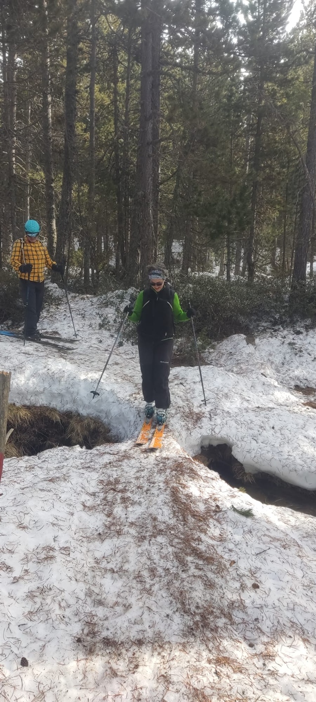 Anem baixant resseguint el circuit marcat de l'anada, i malgrat que es fa llarg, finalment arribem a l'estació, on ens espera una cerveseta fresca al bar, per acompanyar els entrepans que duem. Cal dir que els 3 esquiadors, s'ho han muntant d'allò més bé i amb l'excusa que han arribar molt abans que la resta, s'han entaulat al restaurant!!