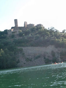 Com que la nit és molt curta i no teníem pas molts arbres a prop, a les vuit del matí ja érem tots a punt per a la segona jornada de rem. Vam anar sortint tots amb el pantà com una bassa i l’aigua com un mirall. No feia encara calor i quan vam entra dins del congost no ens donava gens el sol. La solitud era immensa i el silenci impressionant. Només se sentia el sorollet dels rems entrant i sortint de l’aigua i uns quants ocells. El trànsit pel congost va ser el millor moment del dia i vam aprofitar per fer tots unes excel·lents fotografies de record.