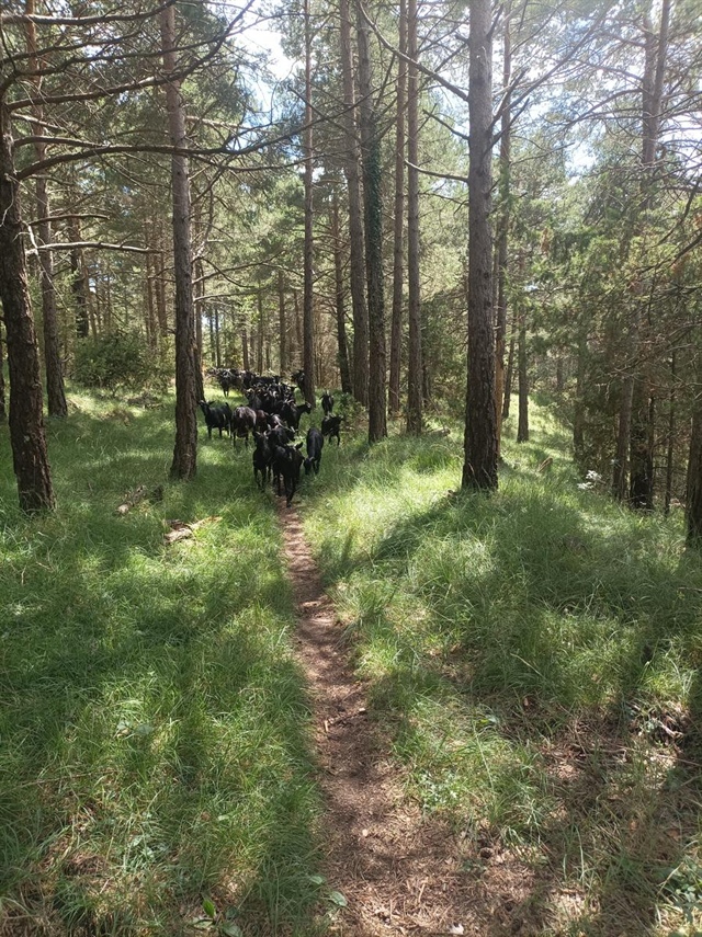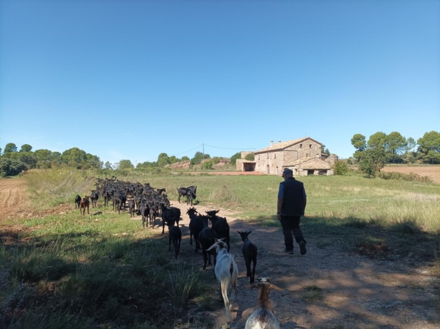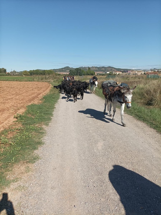 En Daniel té un ramat de 150 cabres de raça murciana-granadines i durant aquesta transhumància també de dues de raça sevillana. Juntament amb una euga (la Fabiola) i dos rucs, així com tres gossos (Pirata, Brisa i Lluna). També l’acompanya un rabada en Ricard que està aprenent l’ofici amb molta il·lusió. I no ens podem oblidar de l´Ingrid que està sempre on cal un cop de mà i sobretot coordinar.